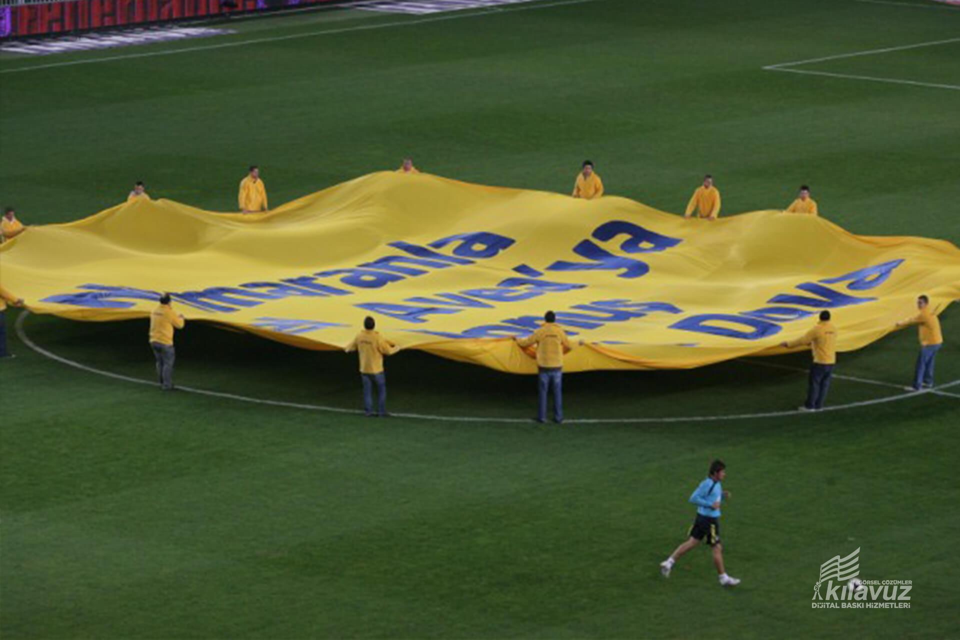 Orta saha bayrak organizasyonları, özellikle futbol kulüplerinin organizasyonlarında etkileyici bir görsellik oluşturmak amacıyla kullanılmaktadır. Digital tekstil baskı tekniği ile raşel kumaşından üretilen orta saha bayrakları, özel ip ile sağlamlaştırılmış kulp sistemi ile dikimi yapılmaktadır. Etkinlik firmamıza ait olup, 1 supervizör + 30 personel ile gerçekleştirilmektedir.
